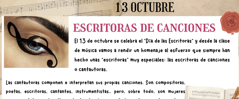 Para el aula de música os proponemos una interesante actividad titulada "Escritoras de Canciones" o Cantautoras para escuchar, leer, pensar y valorar la música de nuestras compositoras, cantantes y poetas.